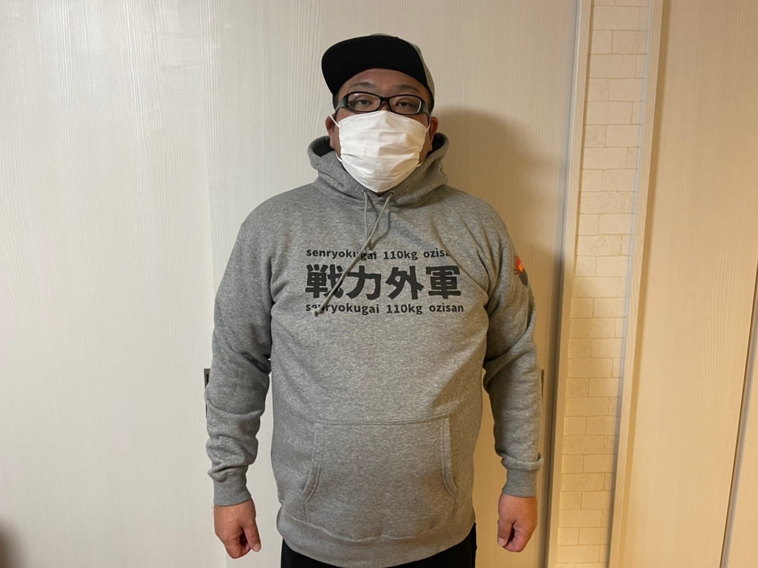 商品作製は、戦力外110kgおじさんが着ているものと全く同じスペック、同じプリント方法で作製しております。